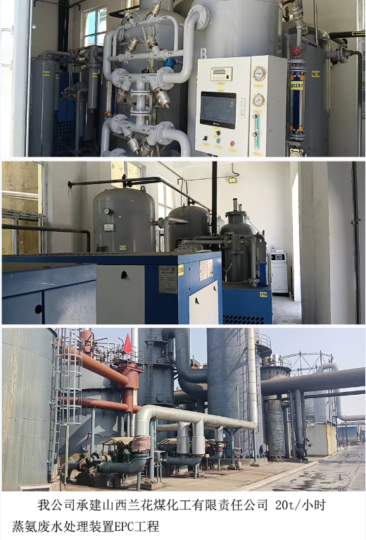 間冷裝置的蒸氨裝置出水;造氣直冷改間冷投運后,將產生20t/小時高濃度氨氮、COD廢水,水溫36度以下。現增加一套20t/小時的蒸氨廢水處理裝置,該裝置投運后可將廢水中的氨氮含量降至50mg/L左右,COD降至700mg/L左右。